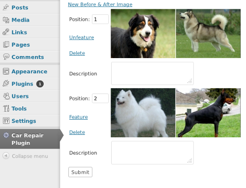 A WordPress plugin to upload and display before and after pictures of car repairs... Or compare dogs.